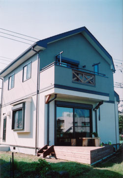 また、WB工法も取り入れています。自然木を燻煙し、WB工法も入れ、合板は一切使わない。ビニルクロスも使わない。エコウッドカラー(自然のものを使った塗料)塗装で建具も無垢材で造り、浴室は壁、天井を青森ヒバの羽目板で仕上げました。また、断熱材もグラスウールではなくウールブレスという羊毛材を私用しています。即ち、建物からVOCを出さないという目標を定め材料を選びました。